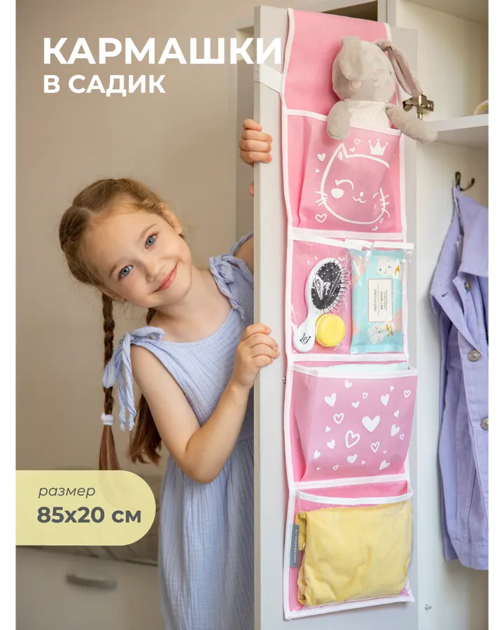 Кармашки Всё на местах в садик для детского шкафчика Котик
