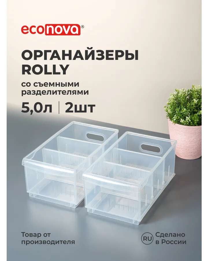 5Органайзер Econova универсальный Optima 11.5л 24.2х45х12.9 см коричневыйДля кухни , имитация выдвижных ящиков удобно