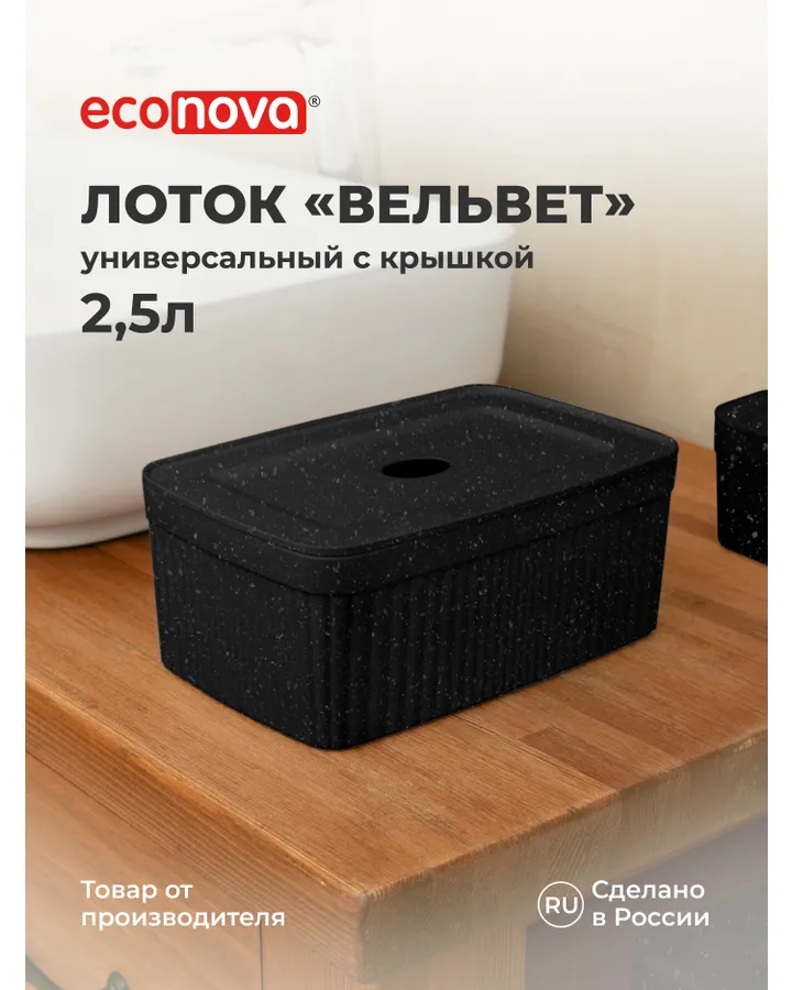 Лоток Econova с крышкой Вельвет 23х15х9см 2.5л черный гранит