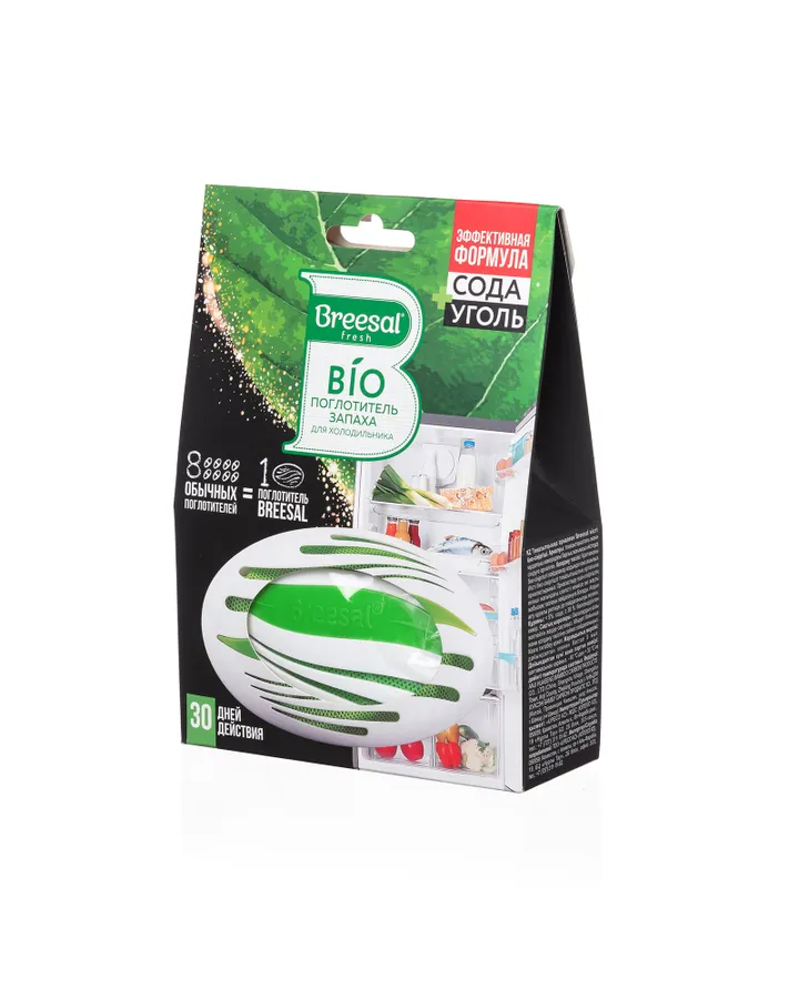 Био поглотитель работает, устраняет все запахи в холодильнике и в морозилке тоже. А еще с ним фрукты и овощи хранятся дольше. Есть удобная клипса, можно подвесить на дверцу холодильника, или просто положить на полку. Отличное качество, натуральные компоненты в составе.