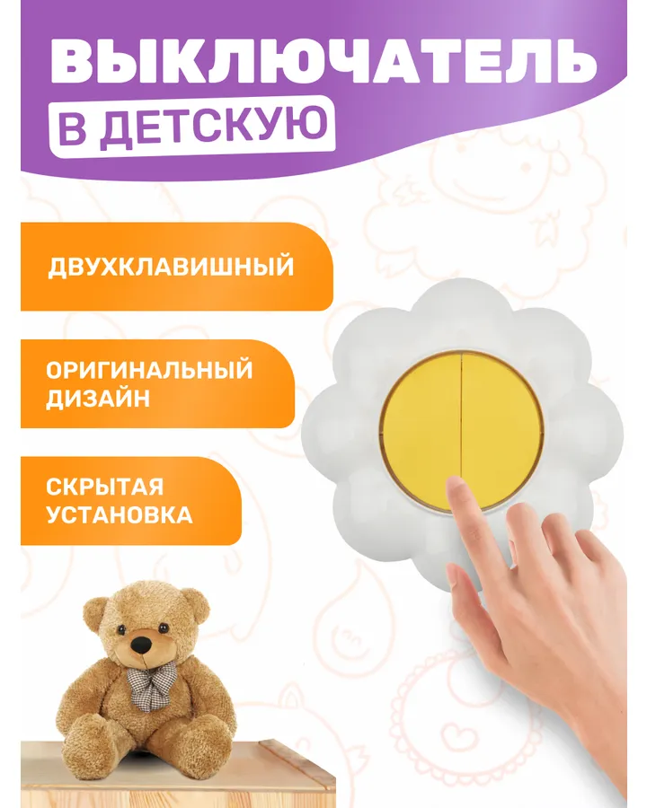 Выключатель Kranz HAPPY «Ромашка» двухклавишный скрытой установки