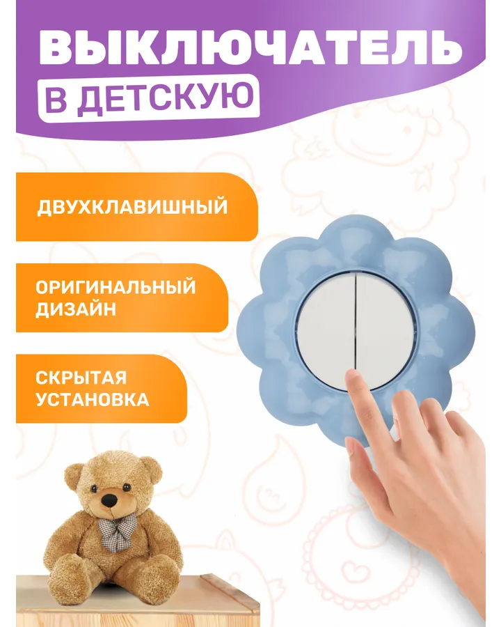 Выключатель Kranz Happy «Цветок» двухклавишный скрытой установки бело-голубой
