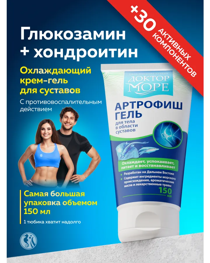 5Артрофиш гель охлаждающий Доктор Море /от воспаления и боли в суставах / обезболивающий/ с глюкозамином и хондроитином/ 150 млОтличная цена