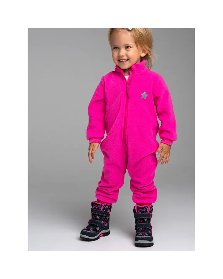 Тёплый комбинезон. После стирки в стиральной машине внешний вид никак не изменился, цвет такой же яркий как в карточке товара. На малыше ростом 75 см и весом 10 кг размер 86 сидит с хорошим запасом, в ширину тоже свободно. За счёт манжетов можно носить уже сейчас, манжеты не узкие, следов на теле не оставляют.