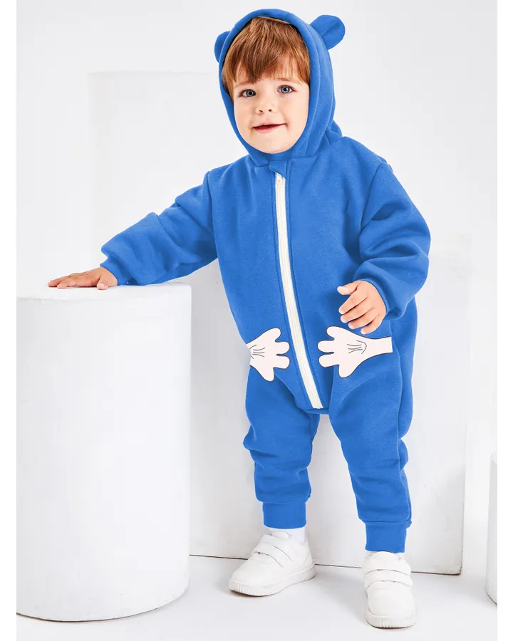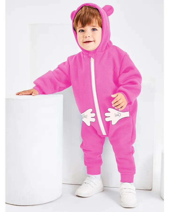 Капюшон отстегивается. Ручки -рукавички и можно без. Теплый мягкий и удобный.