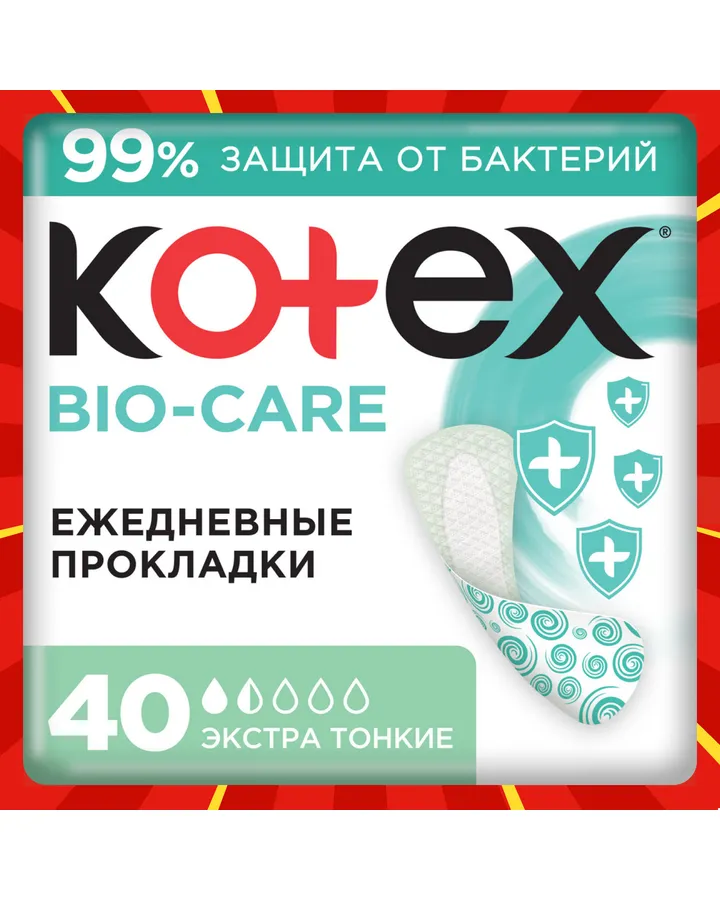 Прокладки ежедневные KOTEX Био-Кэа Экстра тонкие 40шт