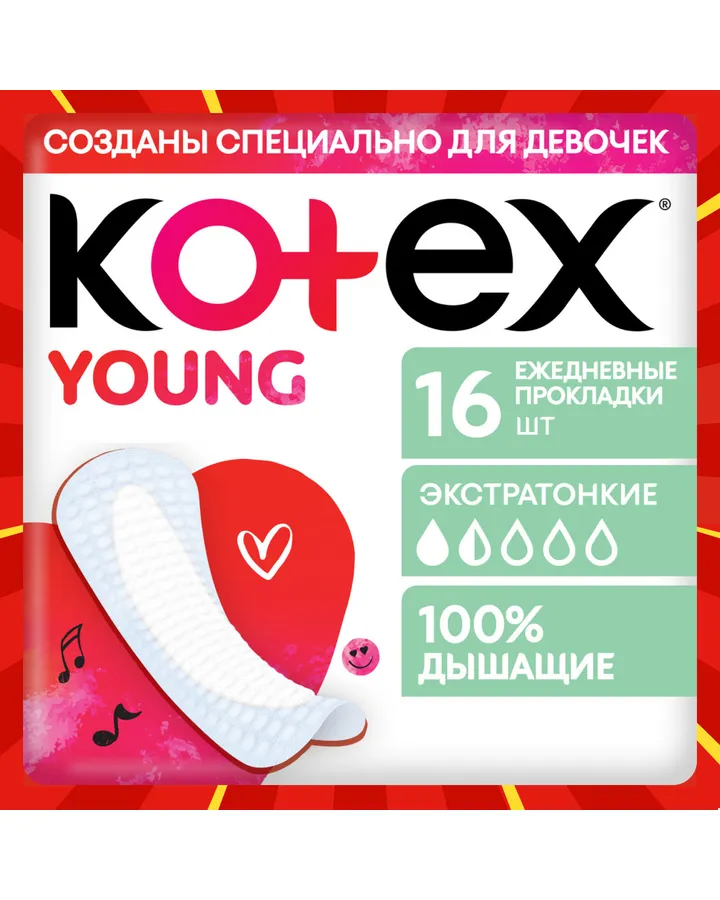 Прокладки ежедневные KOTEX для девочек Янг 16шт