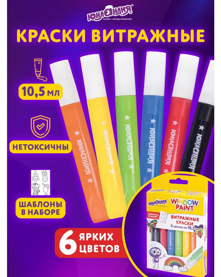 5Краски витражные Юнландия 5 цв.Замечательный набор! Дети в полном восторге, создают красоту на окнах. 🌈