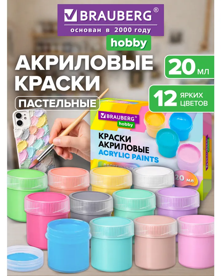 5Краски акриловые Brauberg 24 цв.Рисуют.