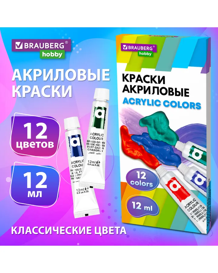 Краски акриловые Brauberg 12 цв.
