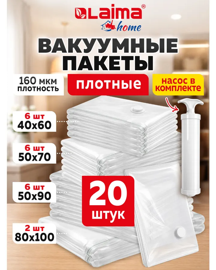 Вакуумные пакеты Лайма зип для одежды вещей 20 штук с насосом и клапаномХорошие! Заказали две упаковки! Но один насос не выдержал, сломался.