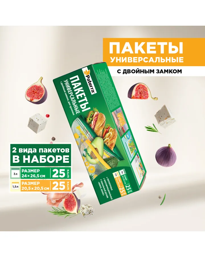 Пакеты для хранения и заморозки Paterra 18х28 см 50 шт в упаковке
