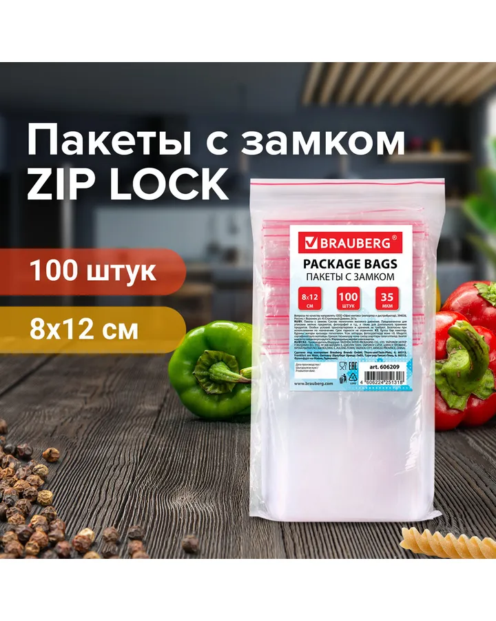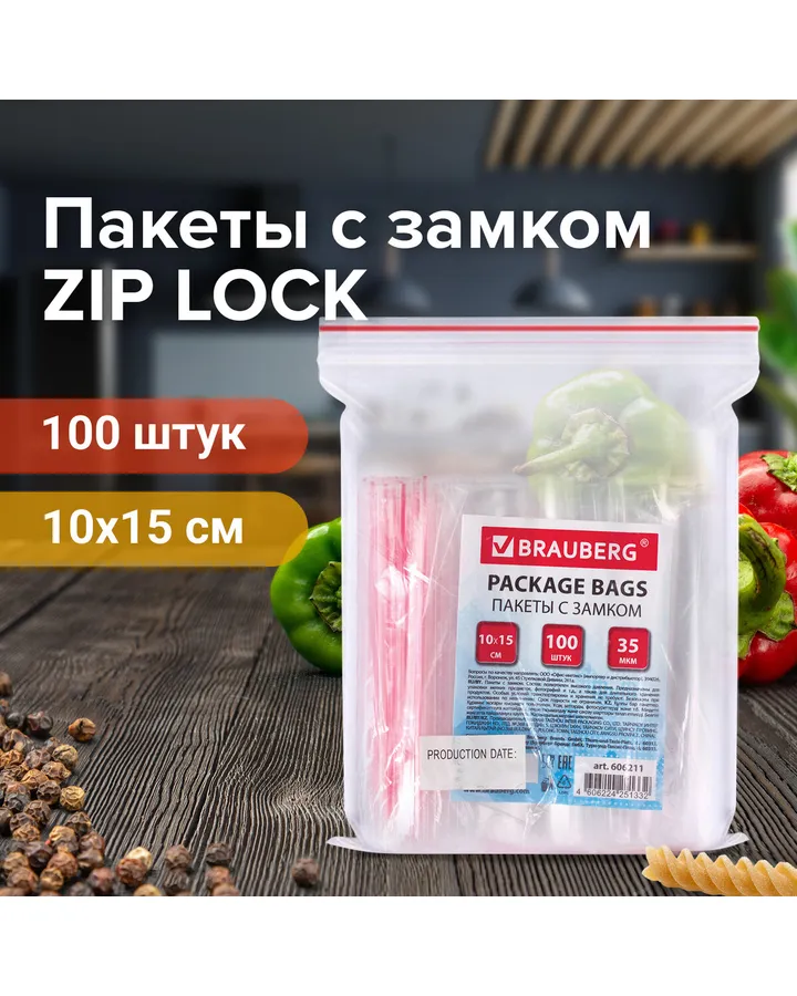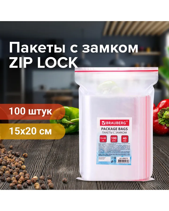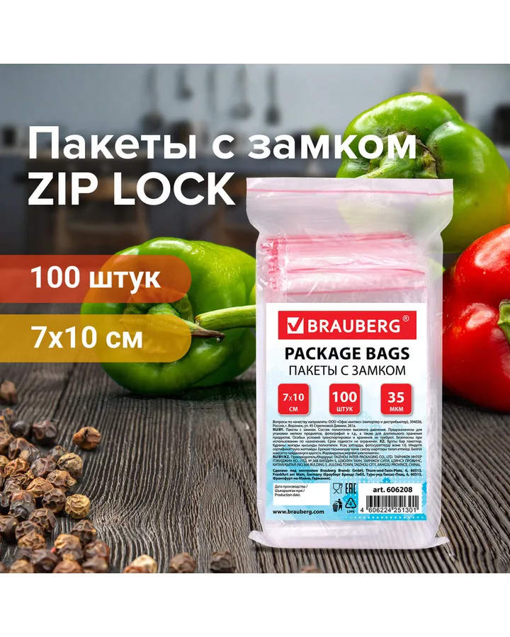 Зип-лок пакет Brauberg для хранения продуктов 100 шт