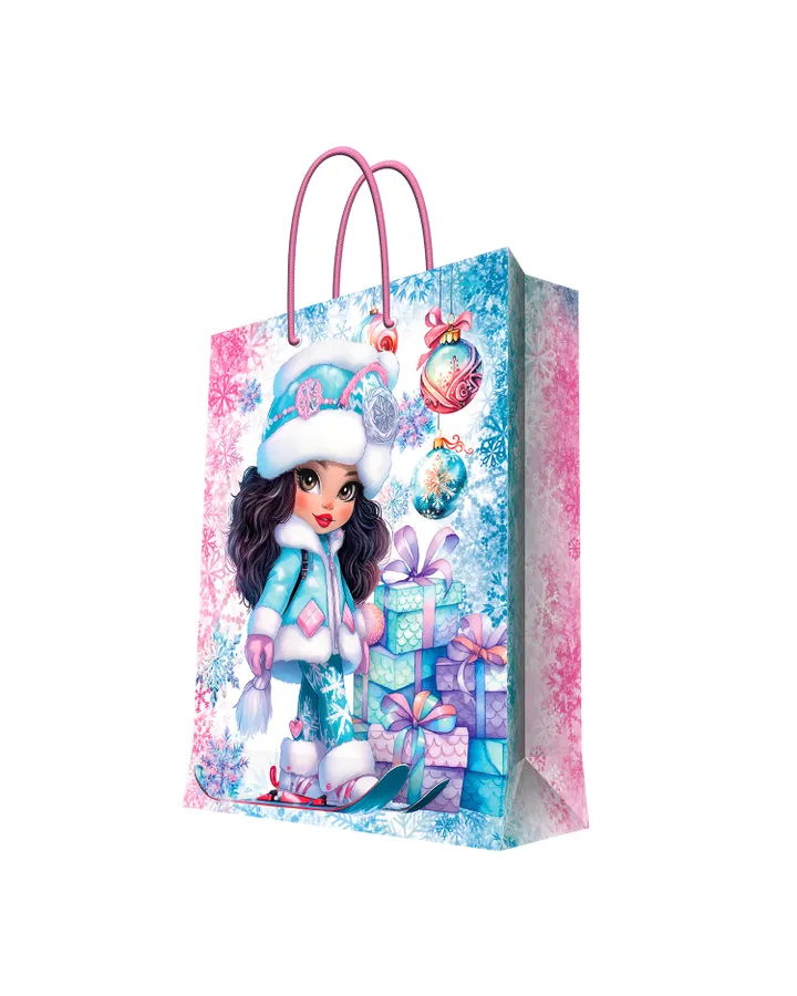 Пакет подарочный Феникс Презент новогодний с ламинацией Анимэ Подружки с подарками 40.6*33*16см 157г/м2 94063FE