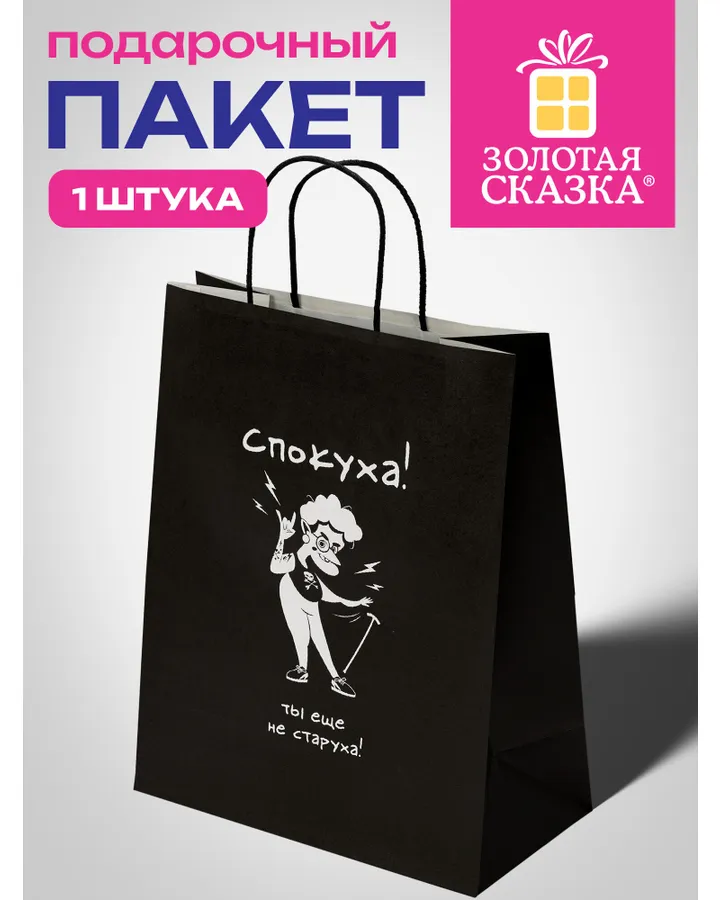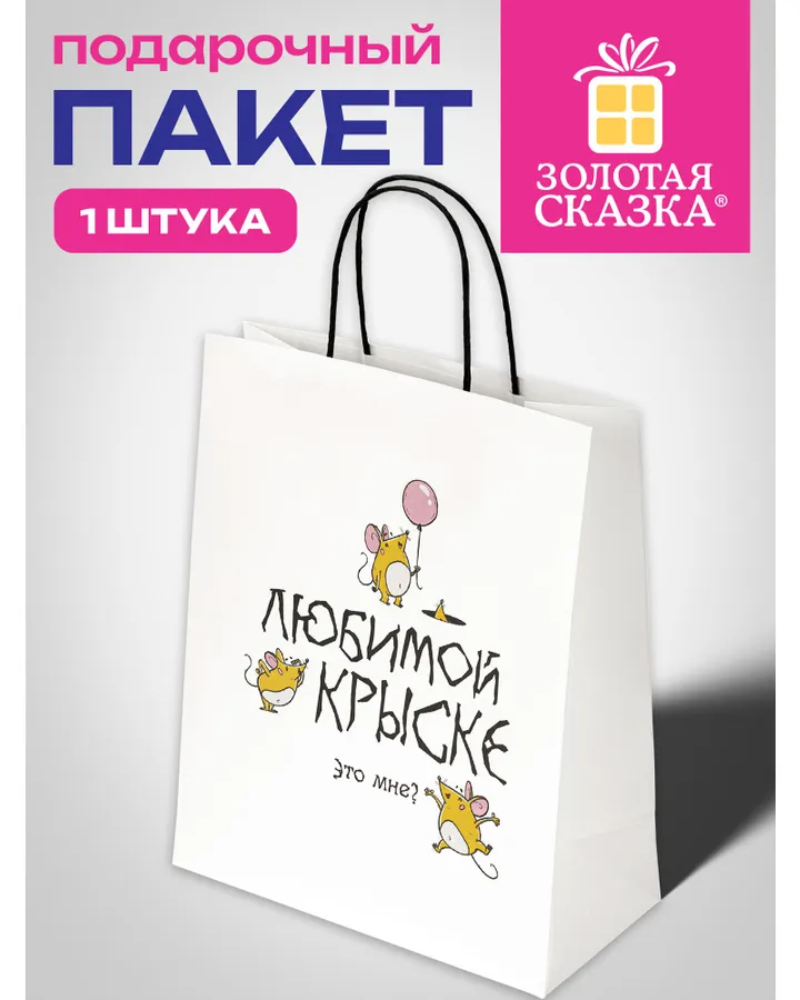 Пакет подарочный Золотая сказка большой крафтовый на день рождения