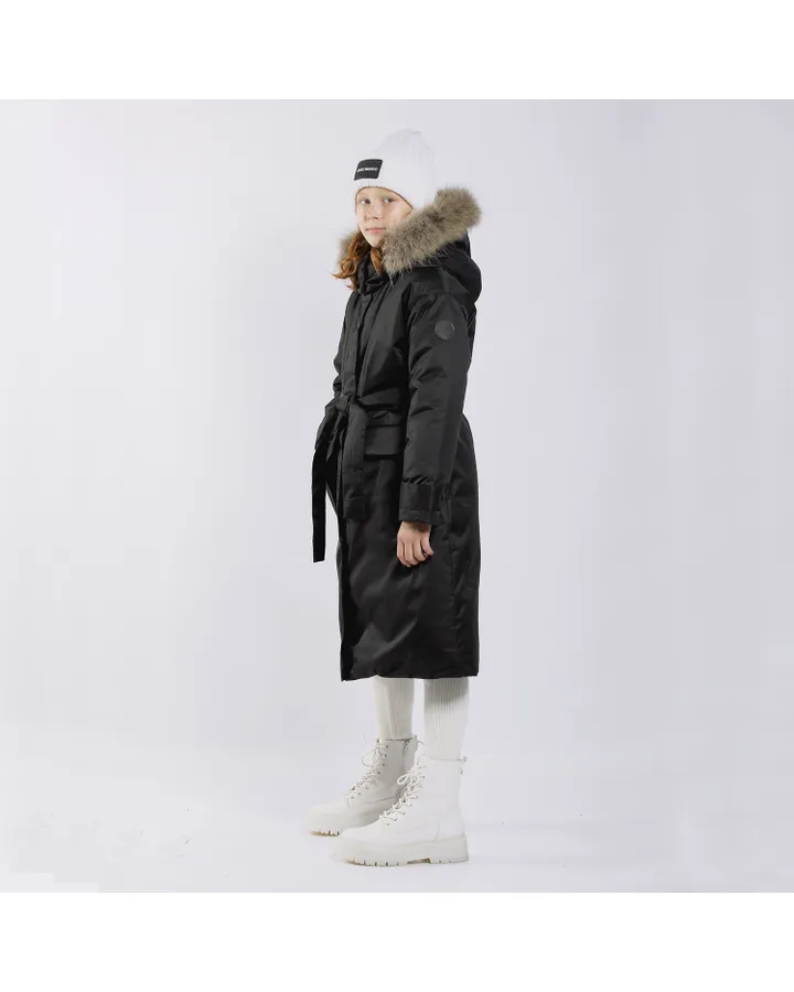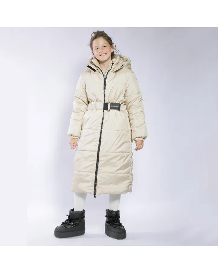 Купила по АКЦИИ за 2500р, дочке очень понравилась эта куртка скрывает ноги, взяла на р. 122,р140 и не прогадала, это пальто такое тëплое как в одеяле как будто и по