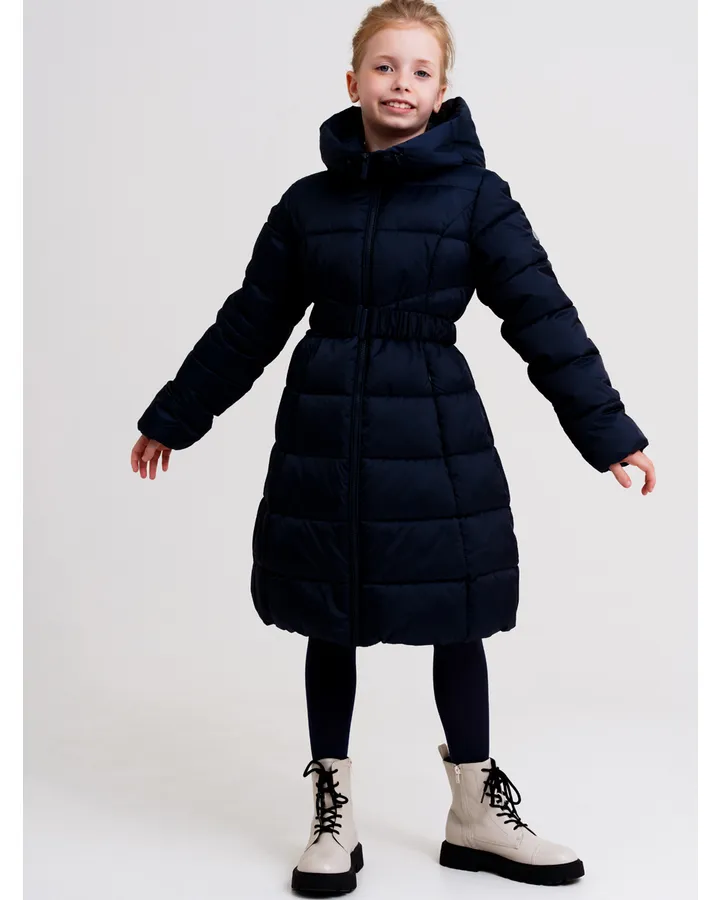 Купила по АКЦИИ за 2500р, дочке очень понравилась эта куртка скрывает ноги, взяла на р. 122,р140 и не прогадала, это пальто такое тëплое как в одеяле как будто и по