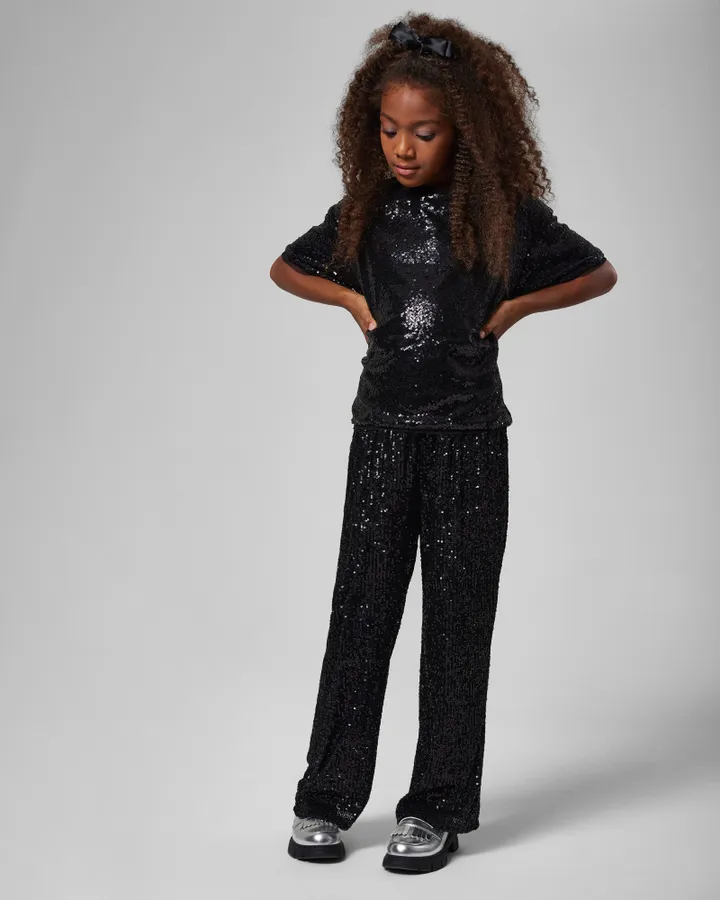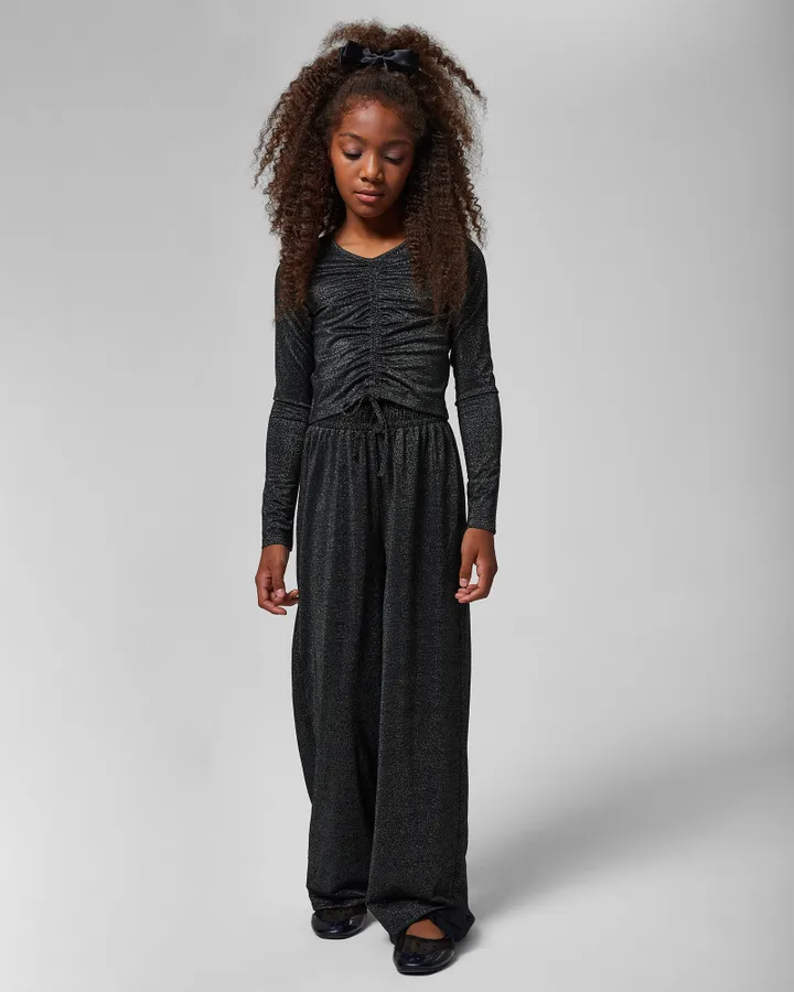 Очень понравились брюки. Тяжёлая качественная ткань, дочка худая смотрятся просто шикарно. Внутри брюк есть подклад. На рост 128 подошли 134. Покупала под бархатную блузку, получился костюм. Можно и в пир, и в мир. Рекомендую.