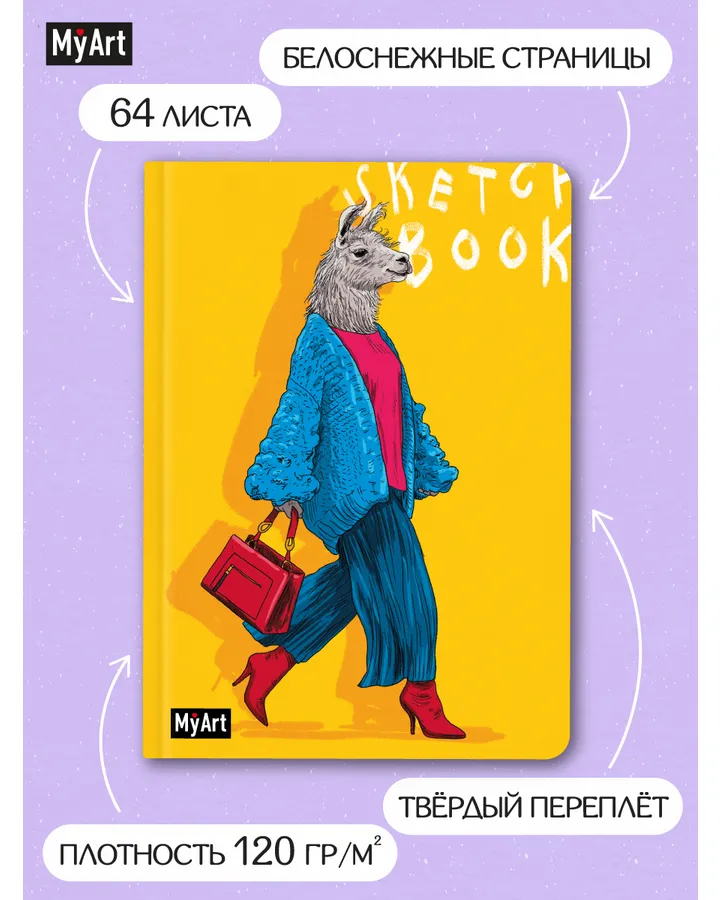 Скетчбук Проф-Пресс блокнот На стиле. Лама А5 64 лист. 1 шт.