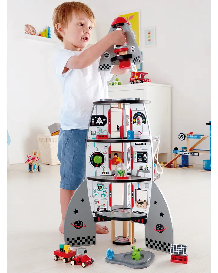5Парковка Hape Космический корабльКорабль выполнен очень детально ,что позволяет детям играть долго и интерестно.