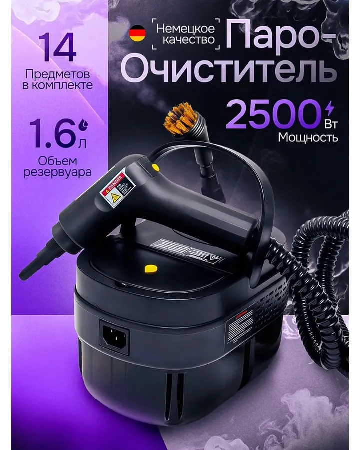 Пароочиститель для уборки дома с тряпкой CASTLELADY перчатками и воронкой профессиональный мощный парогенератор 2500 Вт, 4,7 БарПароочиститель сразу проверила в деле, без проблем отмыла мойку на кухне и газовую плиту. Очень довольна результатом. Советую к покупке.