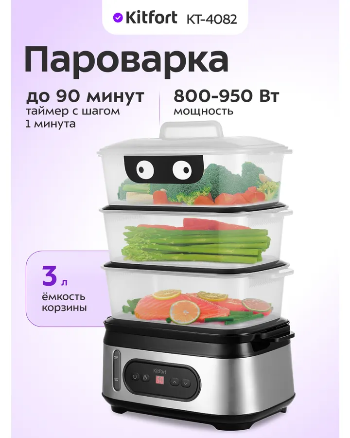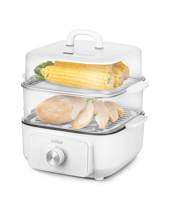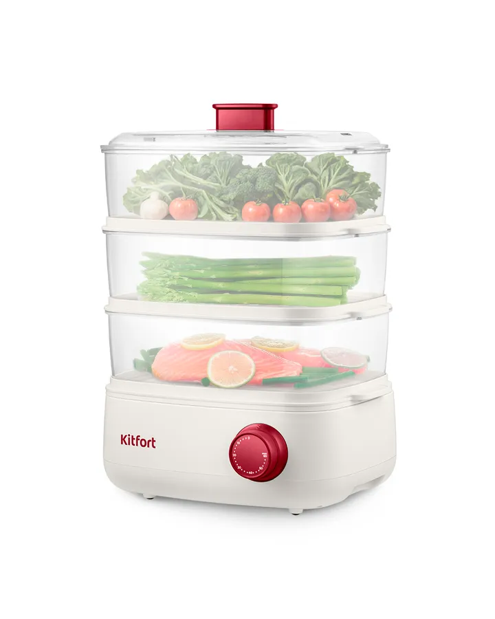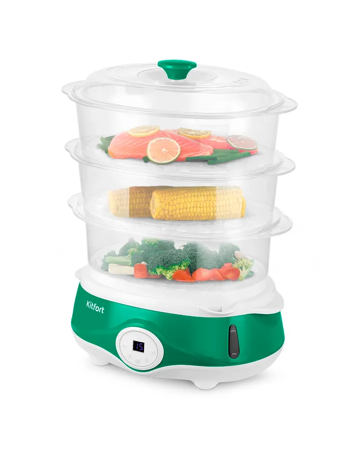 Пароварка KITFORTУдобная, качественная пароварка. Очень просто ей управлять, меню простое без наворотов. Вместительные контейнеры 3 шт, одновременно можно готовить разные блюда.
