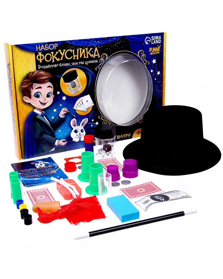 Фокусы Funny Toys Набор из 100Хороший набор, пришел без брака. Все предметы соответствуют. Будем пробовать делать фокусы вместе с ребенком.