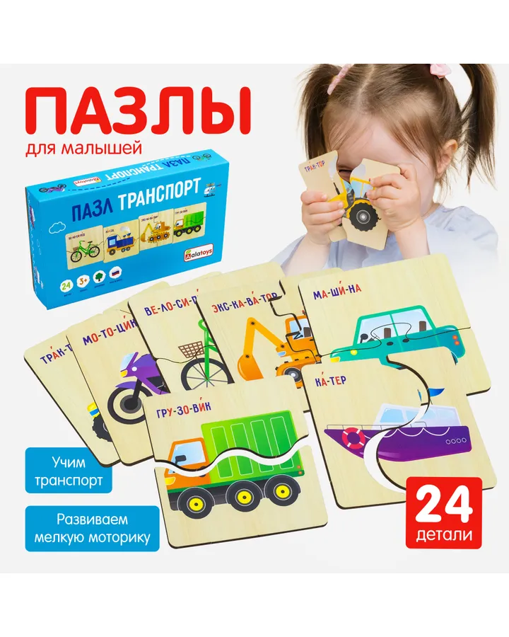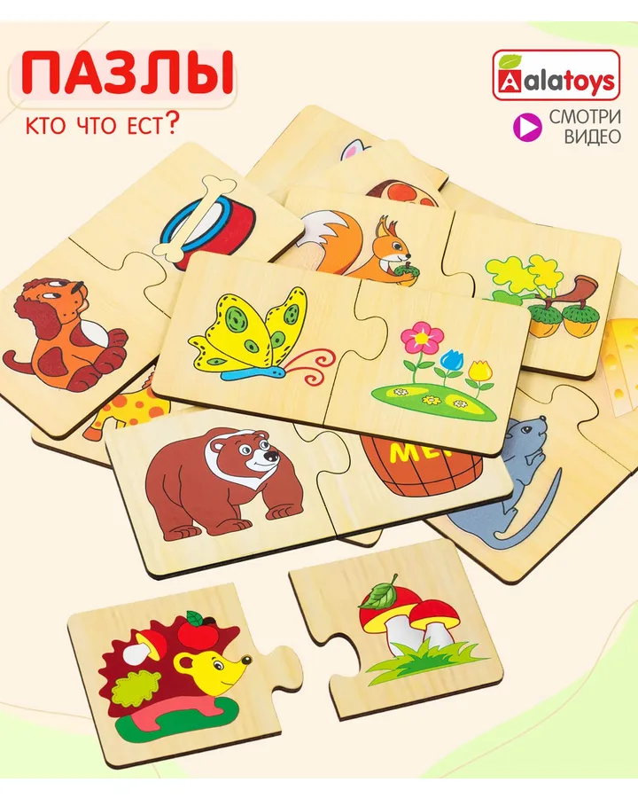 5Пазл Alatoys деревянныйОтличная игрушка, ребёнок 1.4 года в восторге, учим по ней животных и тренеруем память кто где прячется)