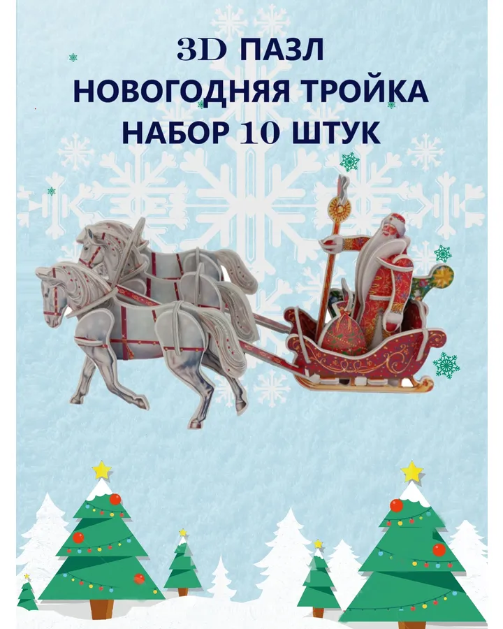 Пазл Хохлома Оптом Новогодняя тройка 10 шт. 3D