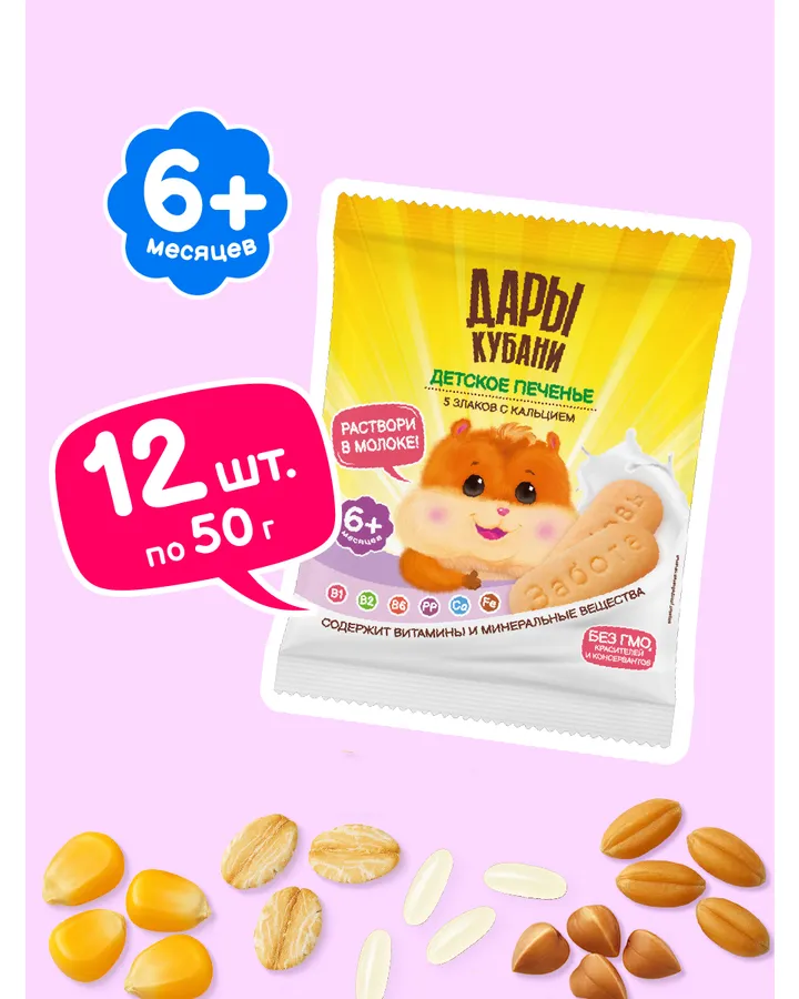5Печенье детское Дары Кубани 5 злаков с кальцием 50 гр х 12 штпрекрасная альтернатива перекуса для малыша