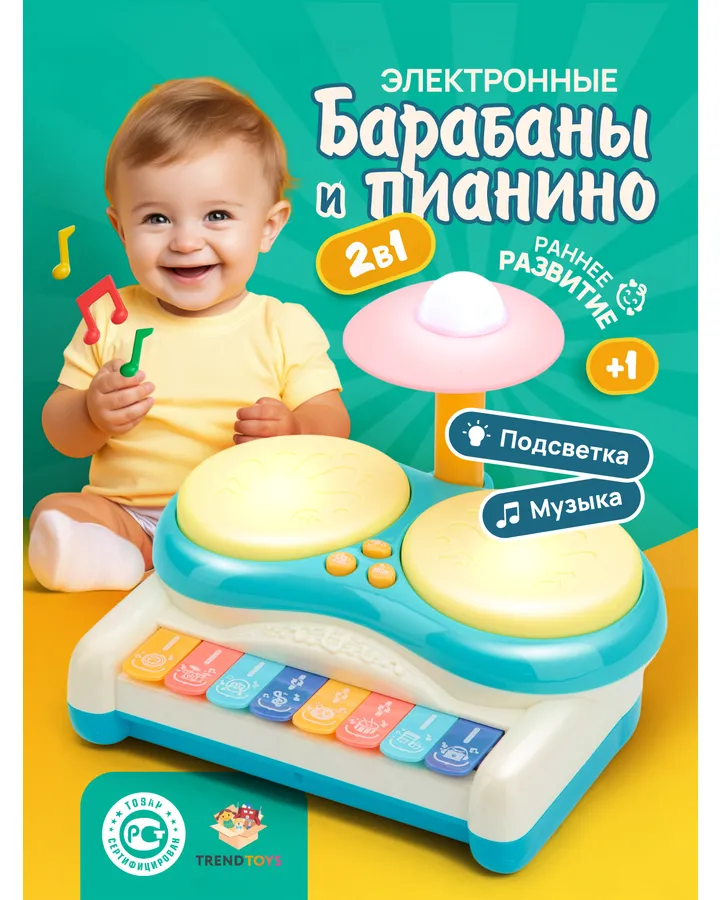 Игрушка музыкальная TrendToys бубен, маракас, кастаньетыПрекрасный набор перкуссионных инструментов. Куплен ребенку 3-х лет для развития музыкальных способностей. Звуки колокольчиков очень приятные:)