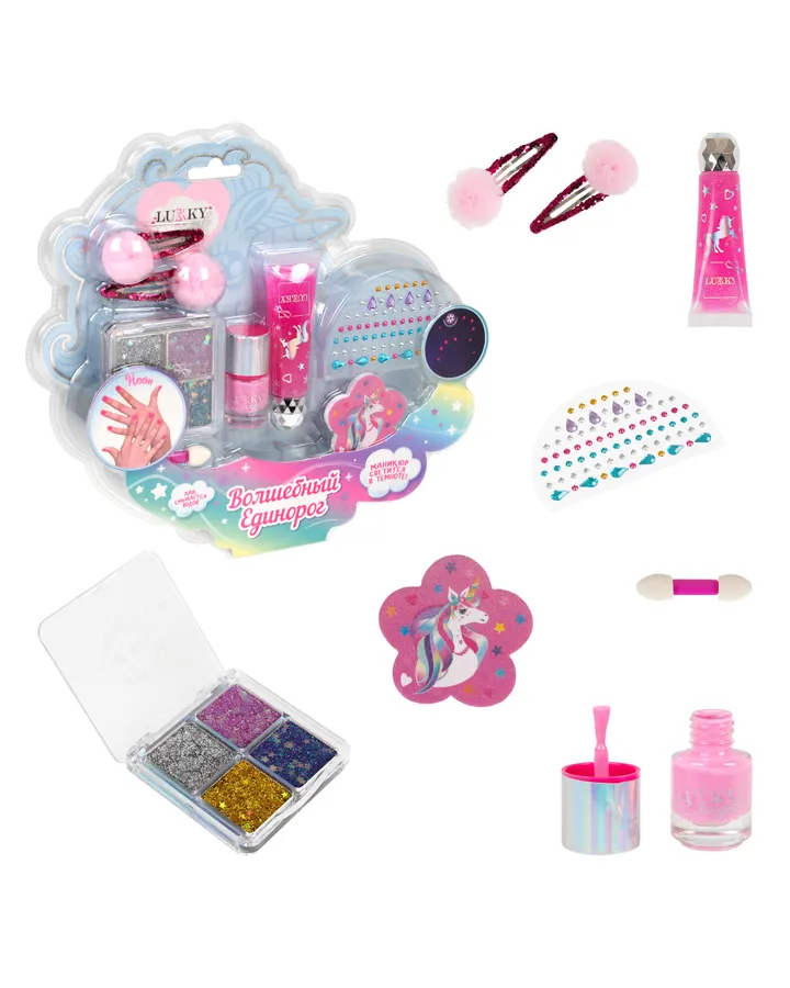 Набор детской декоративной косметики LUKKY Angel Бьюти Кьюти для макияжа век, губ, лица, маникюра и педикюра
