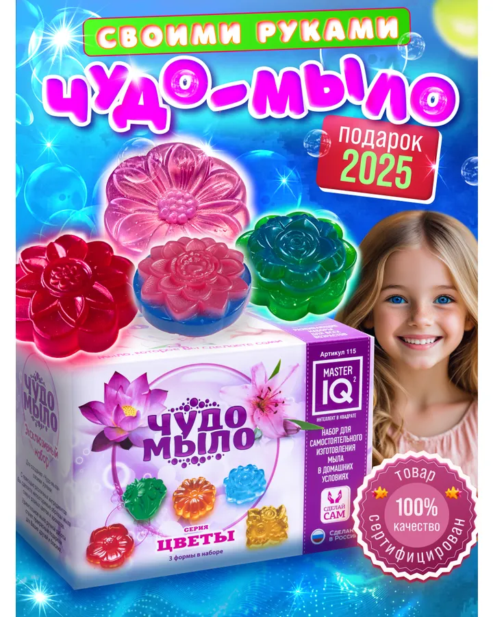 Очень довольны данным набором! Покупали дочке на др 11- летие. Ребёнок самостоятельно справился, остался очень доволен результатом! Мыло очень приятно пахнет, что очень нас порадовало(боялась отдушки, поскольку уже натыкались на резкие ароматы) и хорошего размера! Результатом пользовались все в семье ! Само мыло не раскисало, равномерно смыливалось, что говорит наверное о качестве основы мыльной. Спасибо производителю!