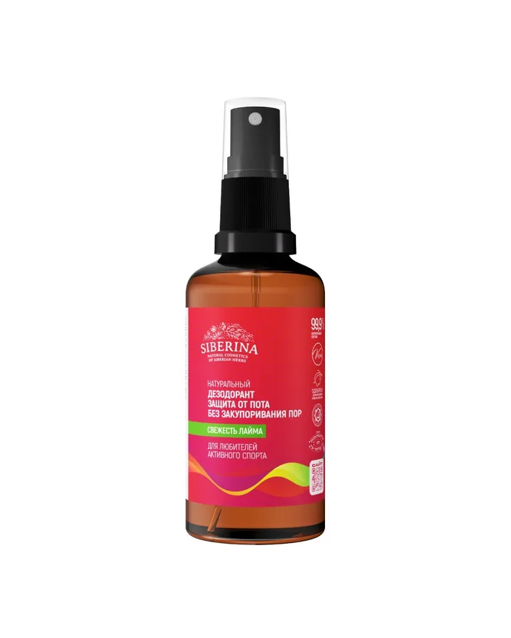 Дезодорант-спрей Siberina натуральный «Свежесть лайма» для любителей активного спорта 50 мл