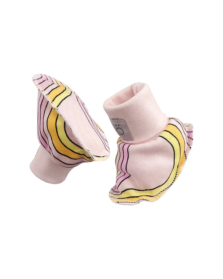 Пинетки Happy BabyСидят на ноге хорошо, не спадают. Резинки мягкие и не давят. Понравилось качество пошива, все выглядит аккуратно.
