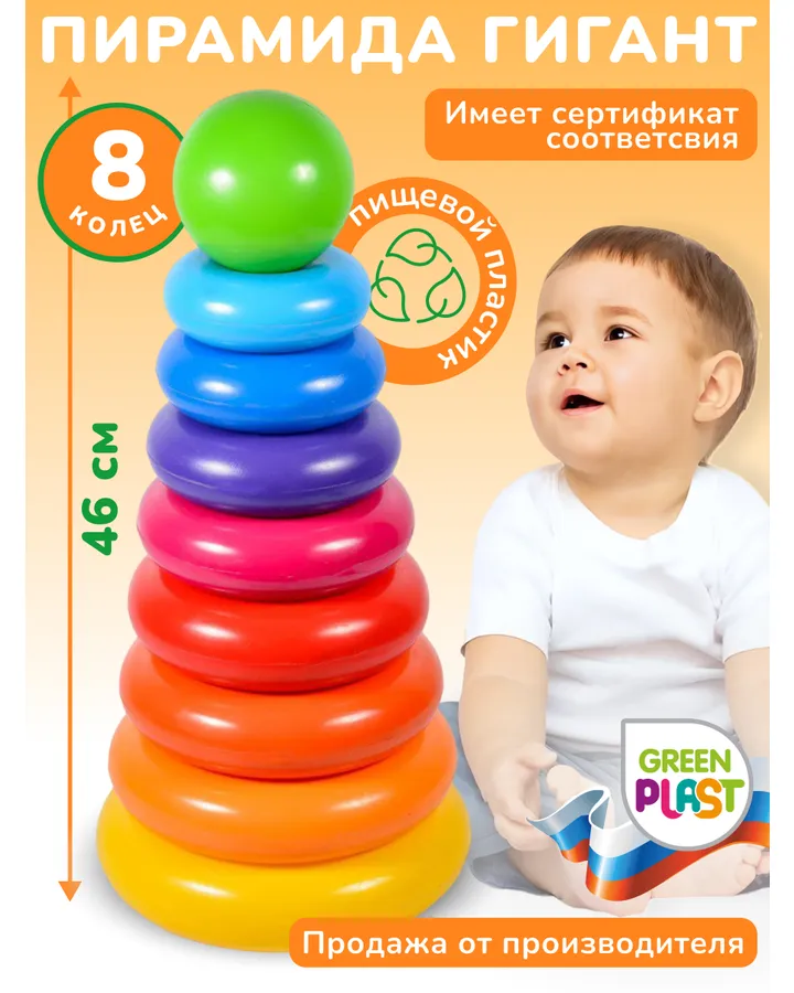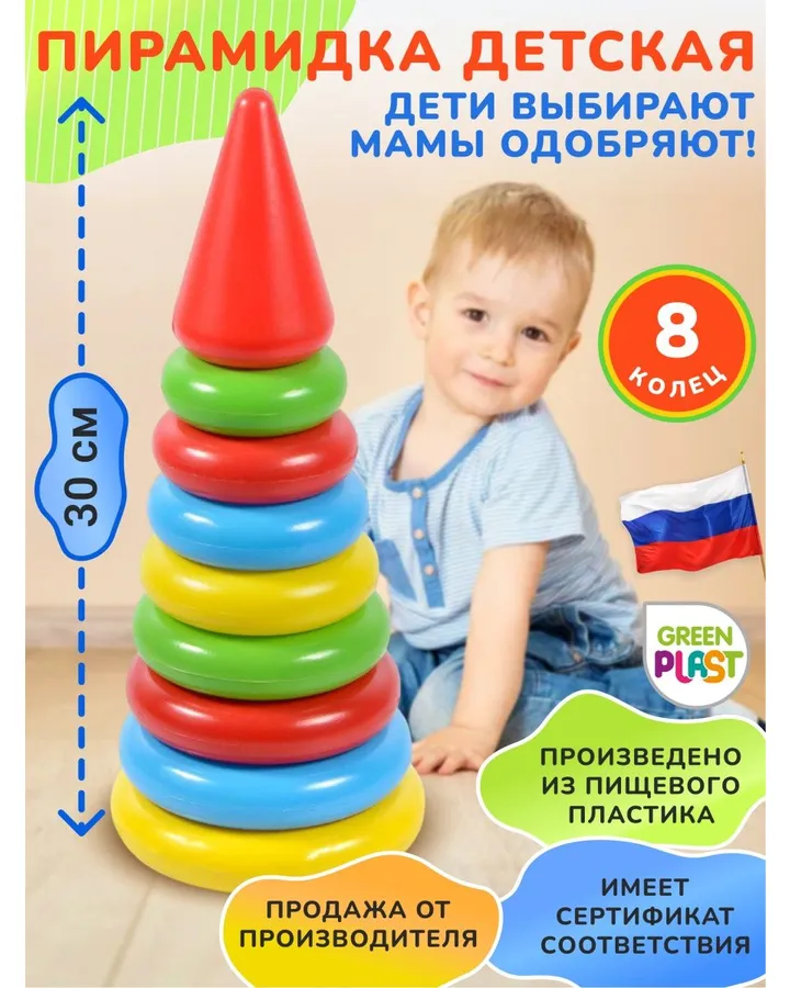 5Игрушка Green Plast пирамидкаХорошая пирамида, но вот ребёнок её разбирает и ходит только с палкой 😂11 мес