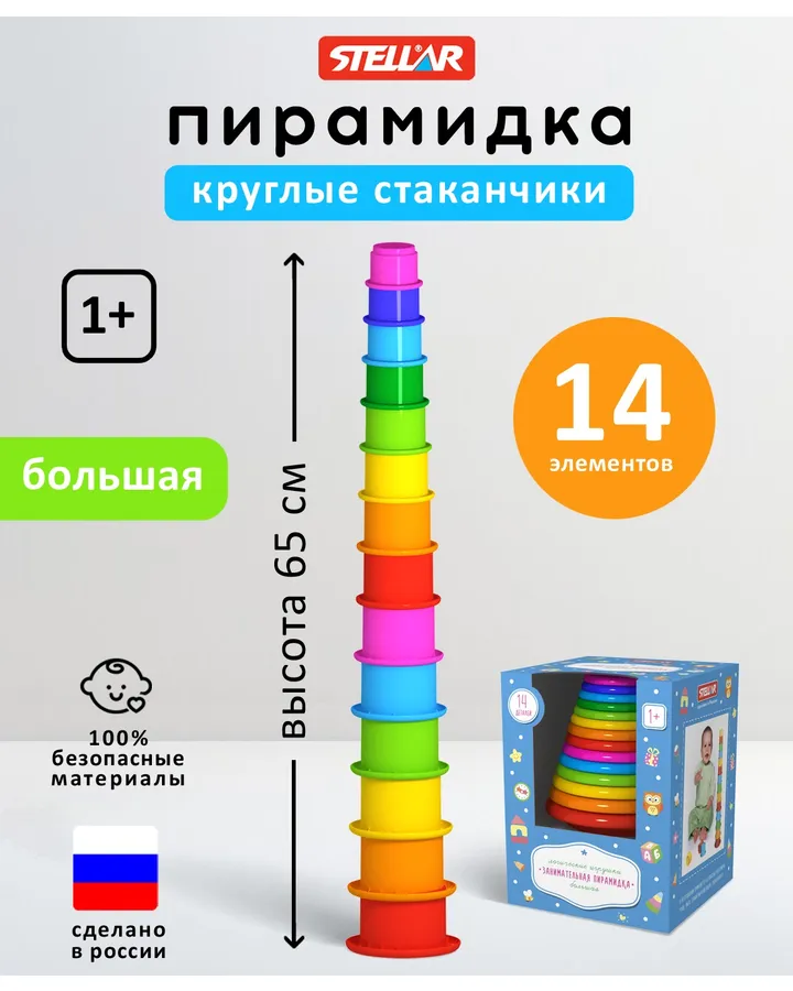 Игрушка STELLAR пирамидкаЗанимательная пирамидка. Ребёнку нравится. Нам 1,2 начинает более осмысленно в неё играть. Качество хорошее.