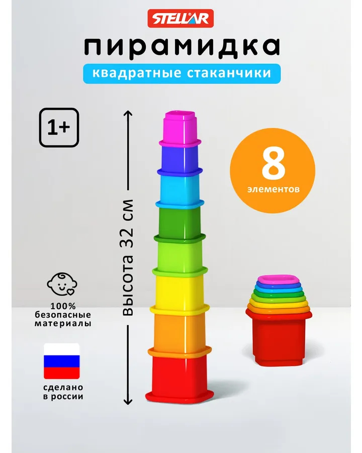 5Игрушка Стеллар пирамидкаХорошее качество пластика, нет посторонних запахов. Ребёнку очень понравилось в нее играть.