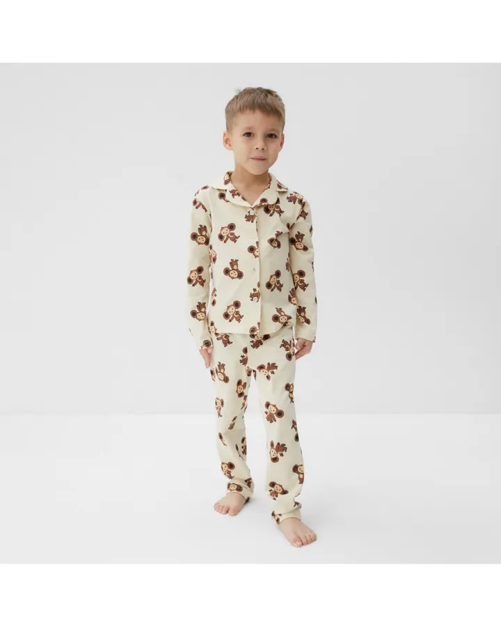 Пижама KaftanПижама красивая. На плотненьких деток сядет хорошо. Наша деточка худенькая, поэтому брюки спадают с талии. Но есть шнуровка, что спасает. Трикотаж обычная кулирка. Не жарко спать.