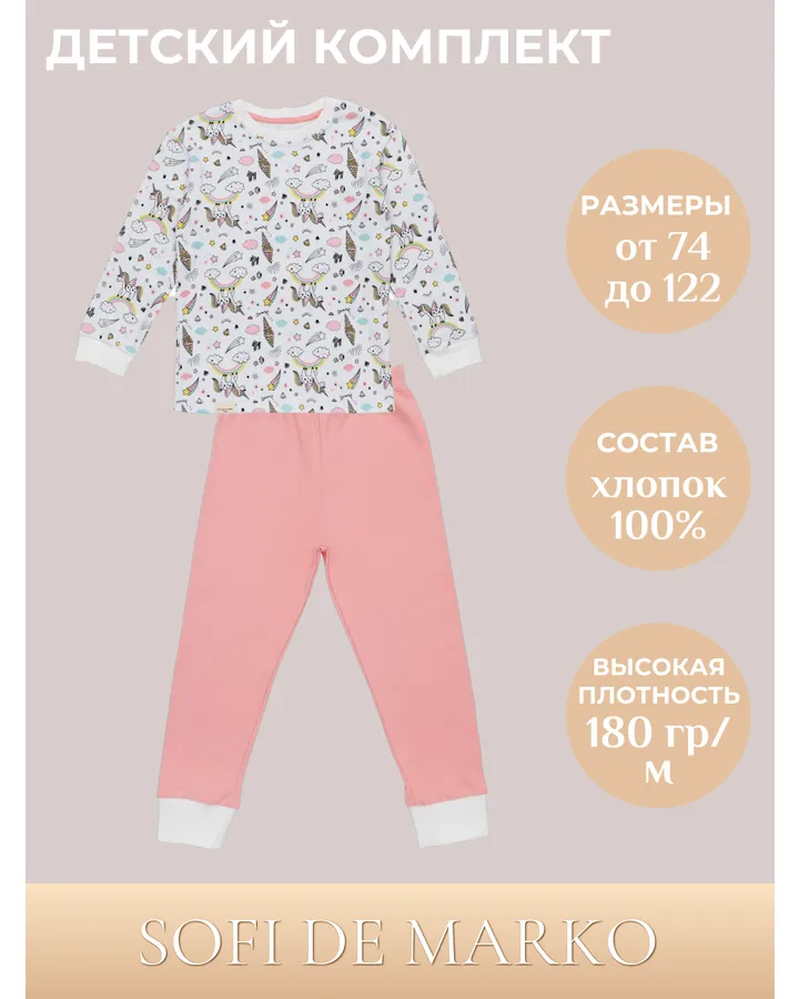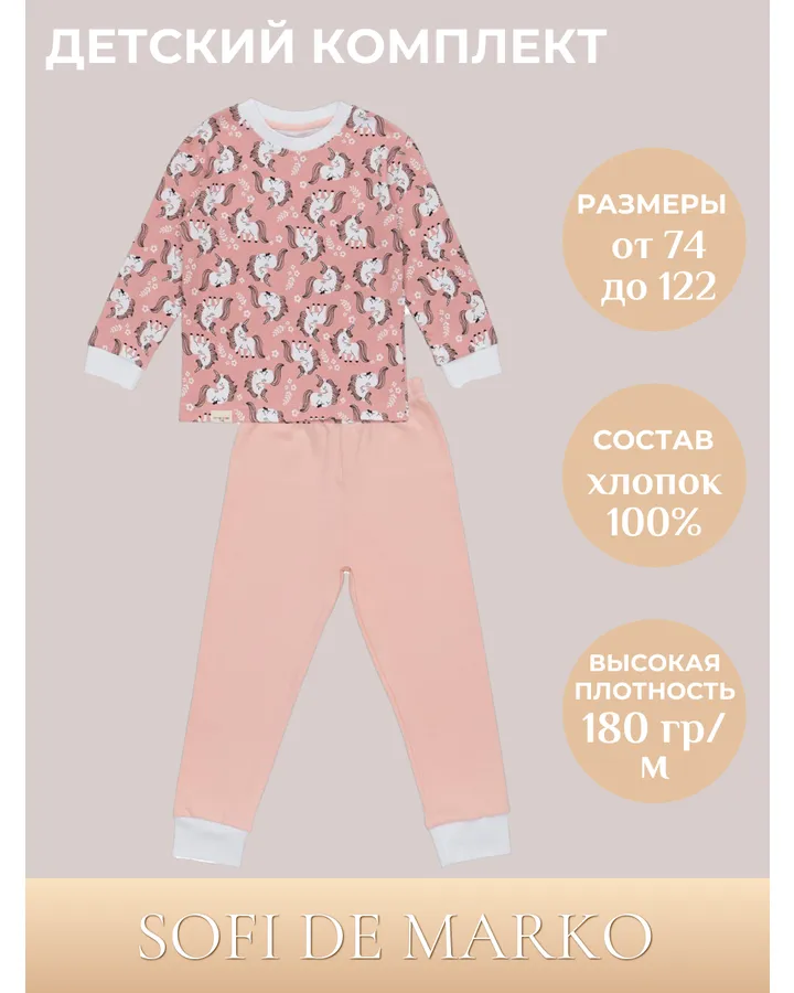 Пижама Sofi de MarkoПокупала по акции за 820руб. Дороже она не стоит этих денег,обычная пижама. Ткань мягкая, после стирки не деформировалась. Ребёнку очень нравится потому, что нарисован трактор))) На рост 79 см, вес 10,5кг идеально подошёл размер 80-86. Штаны как раз, рукава на кофте чуть велики.