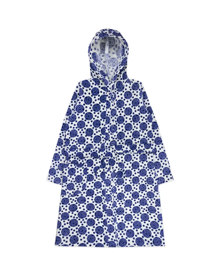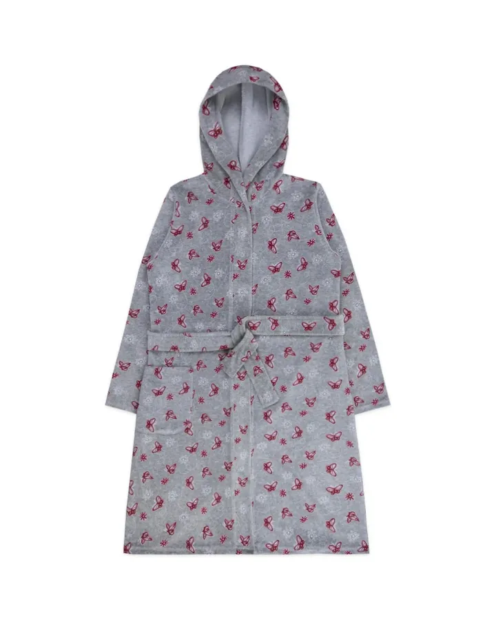 Халат YOULALAОтличный велюровый халат, внутри начеса нет, так что не сильно мягкий. По всей длине кнопочки, что очень удобно. Есть пояс. Покупаем для бассейна и пляжа, чтоб не пользоваться полотенцем и быстро согреться, если прохладно. На рост 136 см рукава полностью закрывают пальцы, по длине где-то до середины голени.