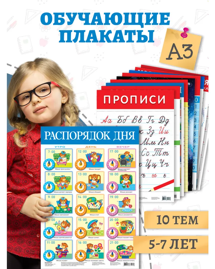 5Набор обучающих плакатов Дрофа-Медиа Возраст 5-7 лет 10 видов 3962Плотный картон, очень хорошие интересные плакаты. Дочка заинтересовалась, изучает!