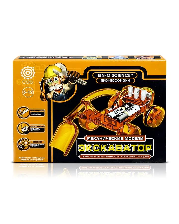 Конструктор Профессор Эйн ЭкскаваторУ нас довольно много игрушек, но экскаватора ещё не было. Нам все понравилось от и до, безопасная игрушка, даже ничего страшного, что не было батареек в комплекте, всё равно игрушка полностью оправдывает свою цену и описание.