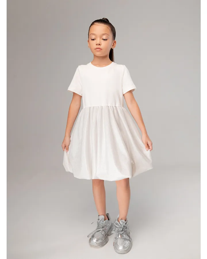 Очаровательное платье, выглядит очень модно. Качество на высшем уровне, мягкий хлопок. Всем советую. Немного маломерит.На рост 110-112 село отлично, девочка худая.