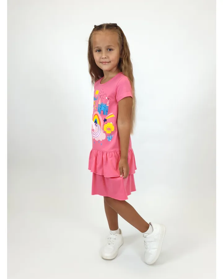 Шикарное платье на лето. Идёт в размер. Девочке на 8 лет взяла рост 140. Спасибо детский мир!