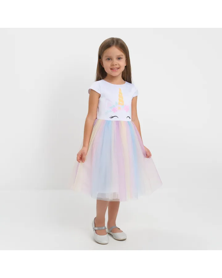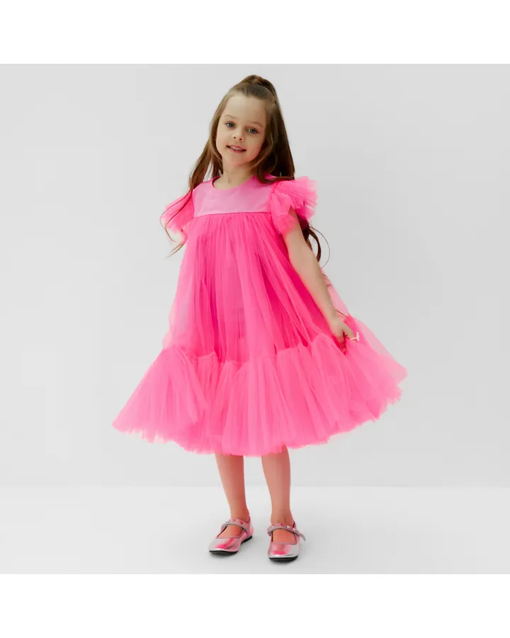 Платье очень красивое. Нежно пудровое. На рост 128 взяли 134-140 . Немного на вырост. Качество хорошее. Ребёнку нигде не колит, не чешет, не жмёт) Швы ровные.