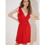Лёгкое платье, комфортная ткань, не просвечивает. Юбка удачная - ветер ее раздувает, но не задирает. Я сделала замеры р. 48, в груди они соответствуют российскому 48, но т.к. ткань оочень эластичная, то на груди она растягивается, а подмышками и на спине висит мешком. Т.е. можно брать и на размер меньше. Из-за этого же свойства ткани пришлось через некоторое время подтягивать потуже бретели. Для пляжа вообще было бы супер, но я брала на повседневку и закрепила запах на груди и спине. А то чуть наклонишься и весь бюстгалтер видно, но это модель платья такая, свободная) После фиксации выреза и ткань под мышками меньше болтается. Ну и в талии можно бы и поуже сделать. У меня не осиная) , но и то свободно.