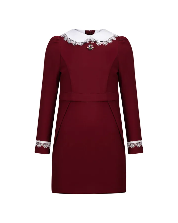 У платья удачный крой. Село по фигуре. Приятный материал. Красивые съёмные детали и брошь.