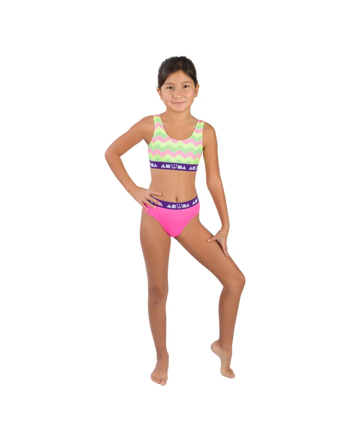Очень хорошо сидит на фигуре. Плотный трикотаж, лёгкая юбочка из сетки. Вырез на спинке глубокий. Трусики хорошо прилегают (хотя девочка худенькая, ничего не топорщиться) .
