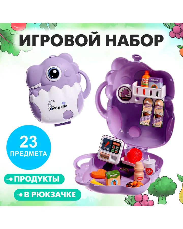 Игровой набор Veld Co тележки и корзинки, прилавок, касса, продукты